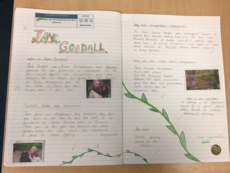 The Outstanding Otters have loved learning about the British scientist Jane Goodall and have produced, beautifully presented, information pages.
