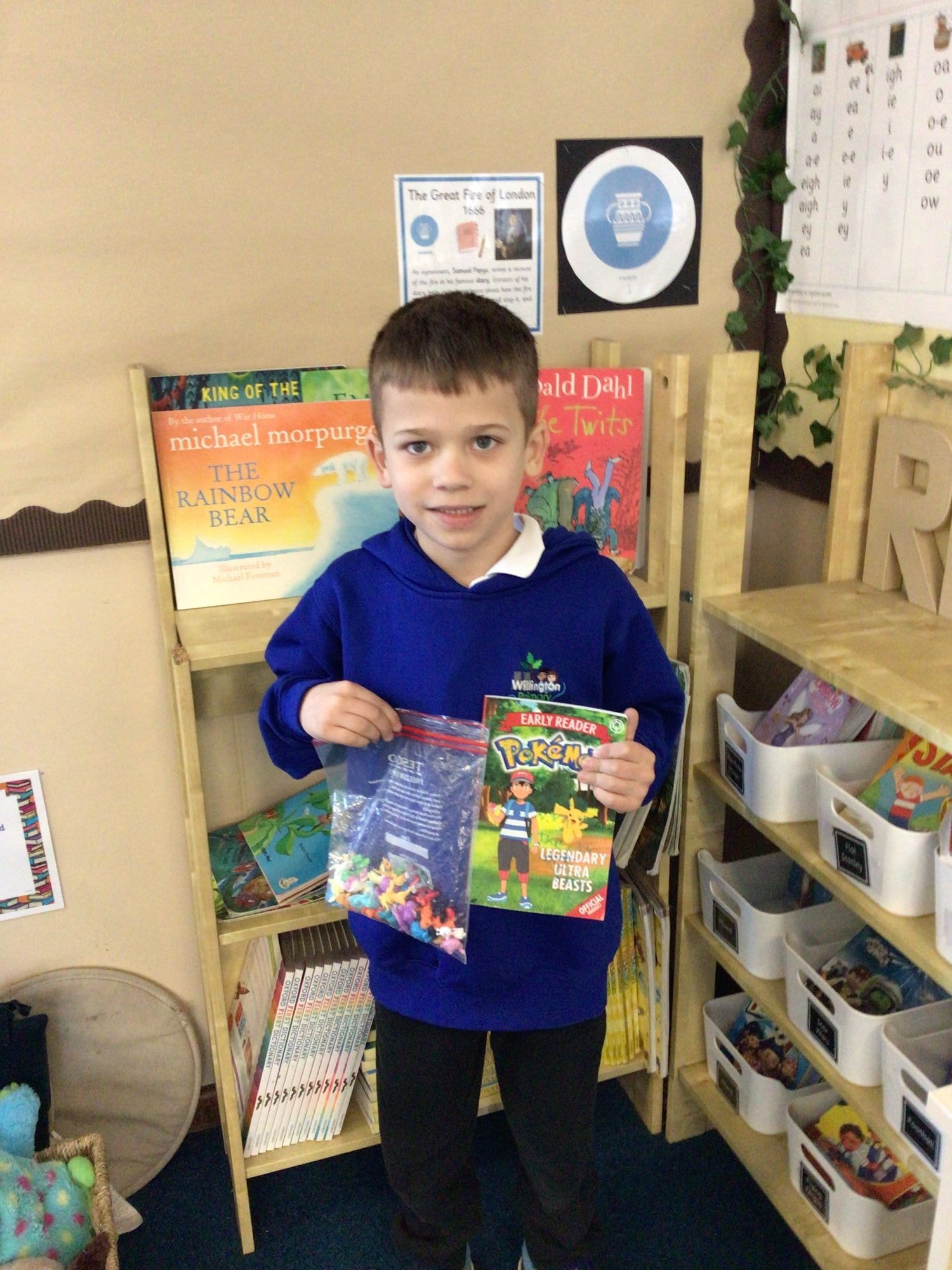 On Thursday, it was World Book Day. We came to school with our favourite books and a prop from our book. We enjoyed sharing these with our friends (see photos at the bottom). We talked about our books and had a competition to create a front cover.